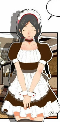Hyangdan is a lean woman with a rather normal build. She has grey hair, which she keeps in two braids. She wears a maid outfit with a collar and two bracelets.