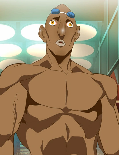 Marin had dark-colored skin with a well built body, yellow-coloured eyes and an oval face, which was due to his diving habit. His bald head was extremely pointed and he was always seen wearing swimming googles on his forehead. Outside, he wore a hooded cape, but during the battle, he simply wore a pair of Speedos, due to his swimming-based background.