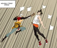 Fading Kick: Similar to the flare in break dancing, Mihu first rushes his opponent then ducks and holds himself on his hands while extending his legs out and tripping the opponent.
